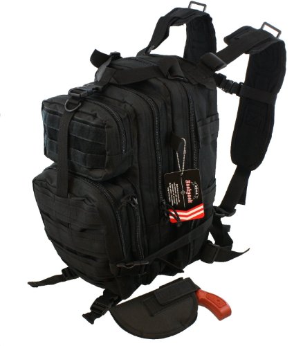 Sometimes you just need the simple basics. This is one such backpack holster. Because we are looking for the best, we found one that is waterproof, tasteful, affordable, and yet expandable and rugged. Black is a universal color, be it for the office or the trail, and the MOLLE compatible webbing ensures a wide range of custom options are available. A built in holster secures your pistol, while the waterproof coating secures your goods. Perfect for urban or outdoor use, this high quality entry level pack is at home as a bugout bag, camping pack, or just for a trip on the bus across town to the library. You want a tactical backpack with holster support? Here it is.